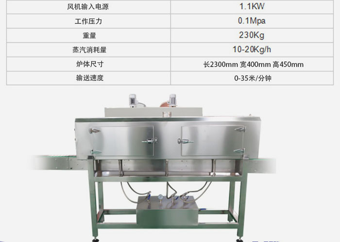 新型的熱蒸汽收縮機(jī)能夠應(yīng)對不同瓶型進(jìn)行平順收縮。低壓蒸汽鼓的分布和蒸汽噴射的路線都通過無縫管,是一致的。噴嘴被分成三段,并且每一段的高度位置和蒸汽輸出可以進(jìn)行調(diào)節(jié),以達(dá)到良好的收縮效果。整臺(tái)機(jī)器由不銹鋼制成,所包含的保溫層不僅節(jié)約了能量,也遵守了國際安全標(biāo)準(zhǔn)。不銹鋼接水盤負(fù)責(zé)收集冷凝水。整機(jī)采用防水設(shè)計(jì),操作便捷簡單,保養(yǎng)費(fèi)用較低。在原有結(jié)構(gòu)上,增加雙層保溫爐,更加節(jié)能。