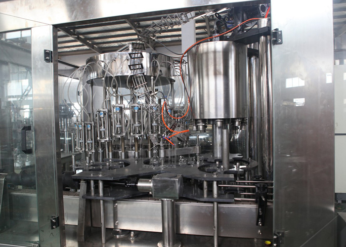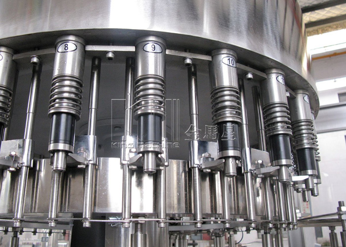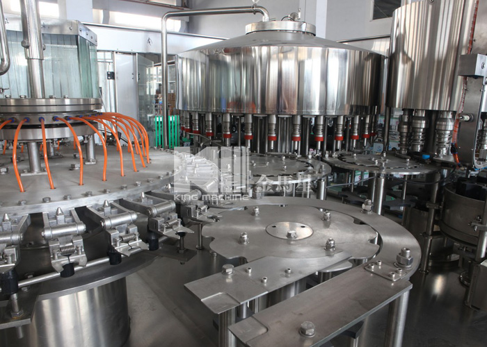 本設備集合了消毒、沖洗、灌裝和壓蓋,合四為一,能夠實現全自動桶裝水旋蓋。沖瓶機使用多種沖品液和消毒液,以保證獲得沖瓶和殺菌效果。消毒液可以循環使用,節省消耗。