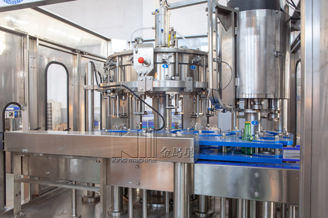 此設(shè)備主要應(yīng)用于灌裝飲料,包含沖瓶、灌裝和旋蓋三大功能。