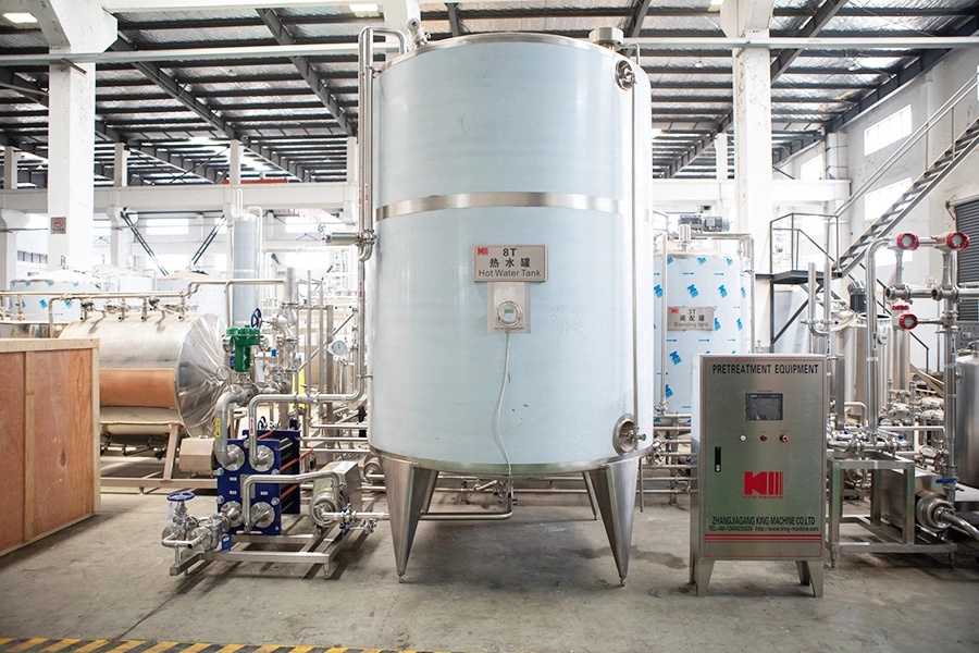 預處理系統在熱灌裝飲料或CSD飲料的生產中起著至關重要的作用。金馬星機械飲料加工系統以其專業的工藝設計、高品質的衛生管道、閥門、精密的控制儀表和電氣元件而聞名。
